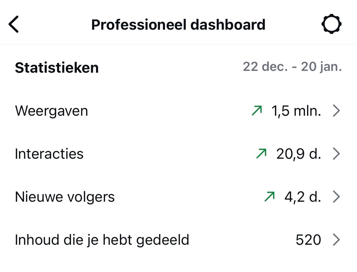 - Bereik: 1,5 miljoen views in 30 dagen.